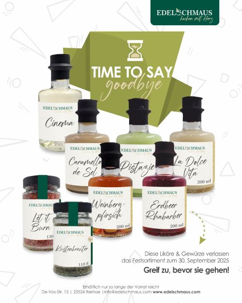 Sie werden unser Festsortiment verlassen: Küstenkräuter, Let it Burn und unsere Liköre. Schnell zugreifen, bevor sie weg sind.